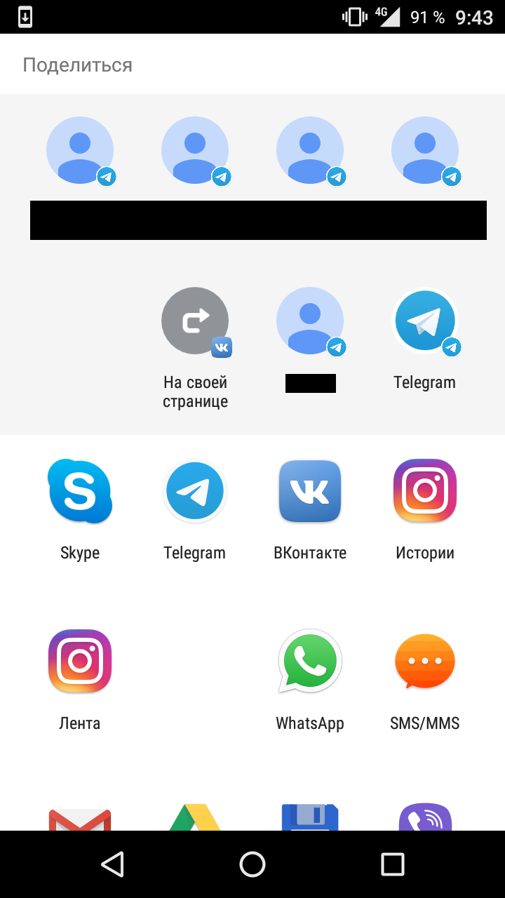 3.Отправить фото документа из любого мессенджера и почты, нажав кнопку "Поделиться" и выбрать сканер.